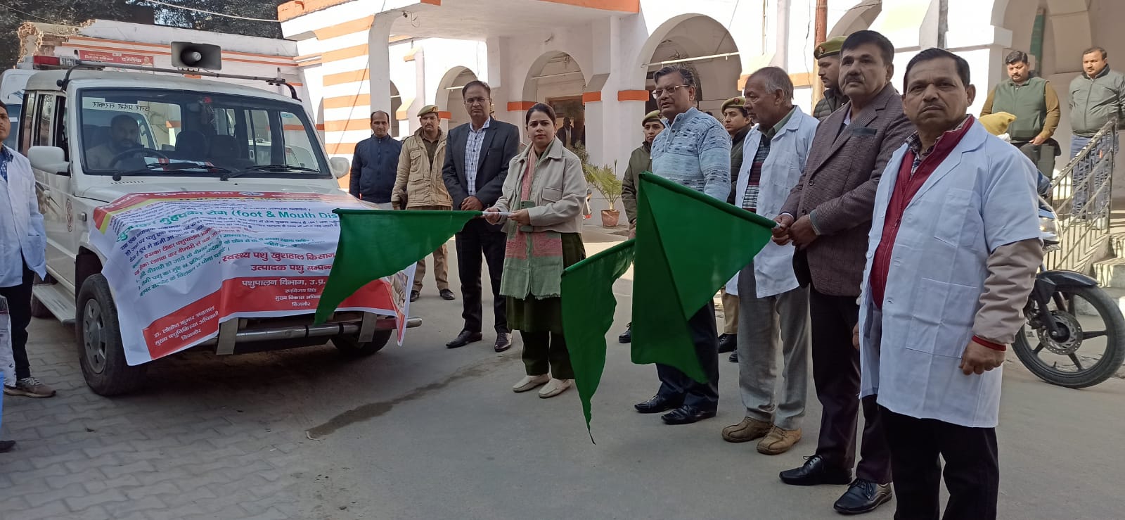 जिलाधिकारी जसजीत कौर ने आज खुरपका-मुंहपका (एफ०एम०डी०) टीकाकरण अभियान के सातवें चरण का शुभारंभ कलेक्ट्रेट परिसर से किया। इस अवसर पर उन्होंने 45 दिवसीय अभियान के लिए गठित टीकाकरण टीमों को हरी झंडी दिखाकर रवाना किया। अभियान 22 जनवरी से 10 मार्च 2026 तक चलेगा।