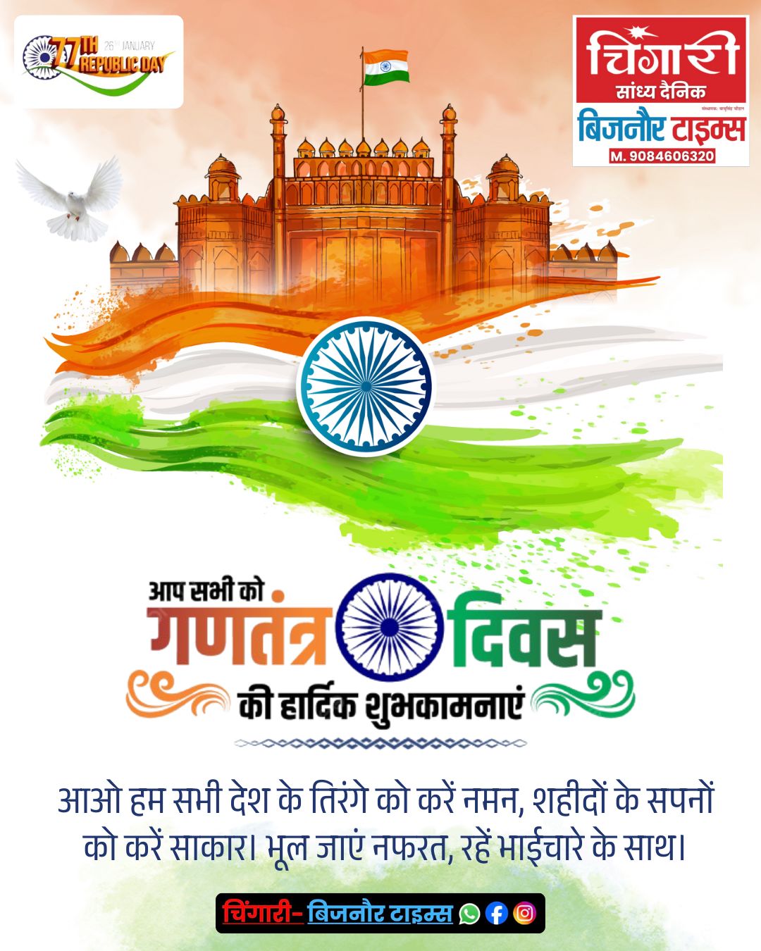 рдмрд┐рдЬрдиреМрд░, 26 рдЬрдирд╡рд░реА 2026 тАУ рджреЗрд╢ рдЖрдЬ рдЧрд░реНрд╡ рдХреЗ рд╕рд╛рде рдЕрдкрдирд╛ 77рд╡рд╛рдБ рдЧрдгрддрдВрддреНрд░ рджрд┐рд╡рд╕ рдордирд╛ рд░рд╣рд╛ рд╣реИред рдЗрд╕ рдЕрд╡рд╕рд░ рдкрд░ рд╣рдо рдЕрдкрдиреЗ рд╕рднреА рдкрд╛рдардХреЛрдВ рдФрд░ рдЖрдЧрдВрддреБрдХреЛрдВ рдХреЛ рд╣рд╛рд░реНрджрд┐рдХ рд╢реБрднрдХрд╛рдордирд╛рдПрдБ рджреЗрддреЗ рд╣реИрдВ, рдЬреЛ рднрд╛рд░рдд рдХреА рд▓реЛрдХрддрд╛рдВрддреНрд░рд┐рдХ рднрд╛рд╡рдирд╛ рдХреЗ рд╕рдЪреНрдЪреЗ рд╡рд╛рд╣рдХ рд╣реИрдВред